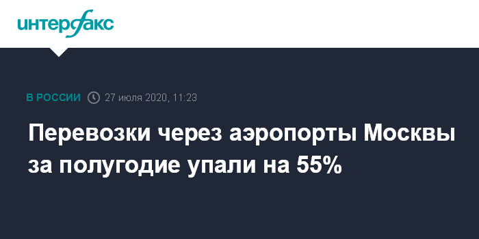 За январь-июнь пассажиропоток трех аэропортов сократился на 55%, до 21 млн человек. Перевозки через "Шереметьево" упали на 58%, до 9,7 млн человек, через "Домодедово" - на 49%, до 6,5 млн человек, через "Внуково" - на 54%, до 4,9 млн человек.