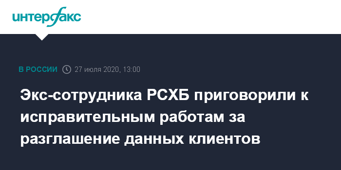 Экс-сотрудника РСХБ приговорили к исправительным работам за разглашение данных клиентов