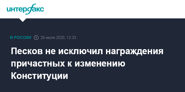 Песков не исключил награждения причастных к изменению Конституции
