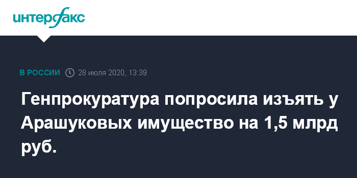 Москва. 28 июля. INTERFAX.RU - Генеральная прокуратура Российской Федерации потребовала изъять и обратить в доход государства имущество бывшего сенатора Рауфа Арашукова и его отца.