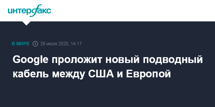 Москва. 28 июля. INTERFAX.RU - Американская Google, входящая в Alphabet Inc, проложит новый волоконно-оптический кабель, который соединит США с Великобританией и Испанией.