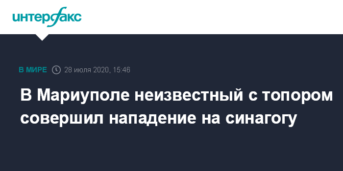 "28 июля 2020 года ... после утренней молитвы неизвестный ворвался в здание синагоги с топором. Он напал на охранника, который вышел навстречу, и нанес ему несколько ударов топором", - сообщил лидер еврейской общины Мариуполя раввин Менахем Мендл Коэн.