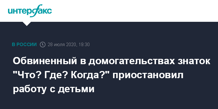 Обвиненный в домогательствах знаток "Что? Где? Когда?" приостановил работу с детьми