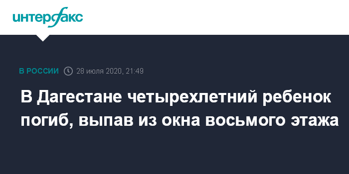 В Дагестане четырехлетний ребенок погиб, выпав из окна восьмого этажа
