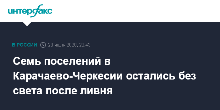 Москва. 28 июля. INTERFAX.RU - Жители ряда населенных пунктов трех районов Карачаево-Черкесии во вторник остались без энергоснабжения из-за природной стихии, сообщили агентству "Интерфакс" в главном управлении МЧС России по КЧР.