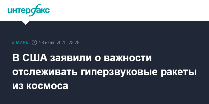 "Нам нужны сенсоры в космосе, чтобы усилить наши возможности по слежению за такими ракетами", - сказал он в сенате, комментируя, в частности, успехи РФ в сфере разработки гиперзвуковых ракет.