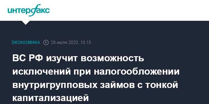 ВС РФ изучит возможность исключений при налогообложении внутригрупповых займов с тонкой капитализацией