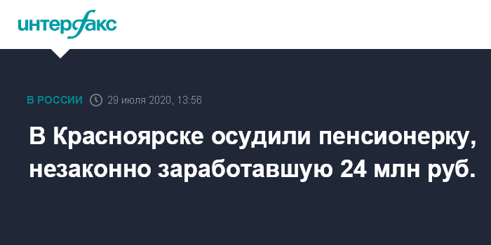 В Красноярске осудили пенсионерку, незаконно заработавшую 24 млн руб.