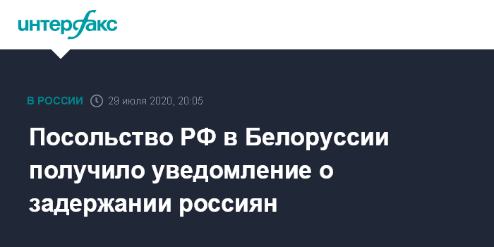 Москва. 29 июля. INTERFAX.RU - Российское посольство в Минске получило уведомление о задержании в Белоруссии российских граждан, сообщили в дипмиссии.