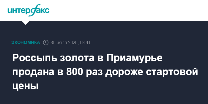 Россыпь золота в Приамурье продана в 800 раз дороже стартовой цены