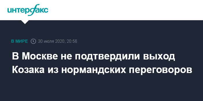 Москва. 30 июля. INTERFAX.RU - В Москве отрицают планы по выходу замглавы администрации президента РФ Дмитрия Козака из переговоров с украинским коллегой в формате советников "нормандской четверки".