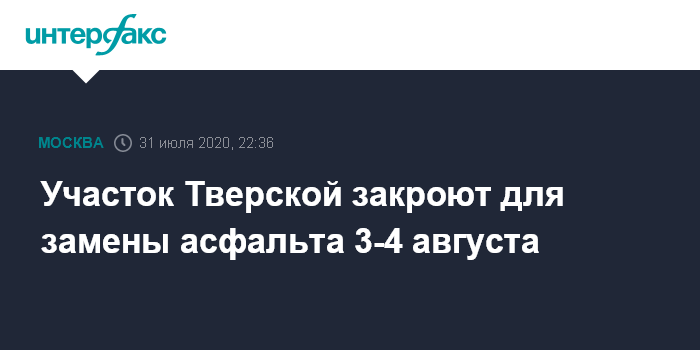 Москва. 31 июля. INTERFAX.RU - Участок Тверской улицы от Моховой улицы до Настасьинского переулка (в районе Пушкинской площади) будет закрыт для автотранспорта с 0:00 3 августа до 24:00 4 августа для ремонта дорожного полотна, сообщил заммэра Москвы по вопросам ЖКХ и благоустройства Петр Бирюков журналистам в пятницу.