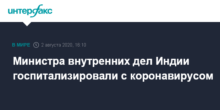 Москва. 2 августа. INTERFAX.RU - Министр внутренних дел Индии Амит Шах сообщил, что у него выявлен коронавирус.