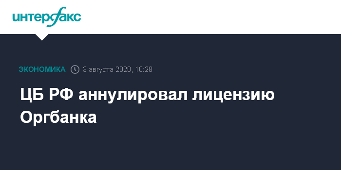 Москва. 3 августа. INTERFAX.RU - Банк России аннулировал лицензию на осуществление банковских операций у Оргбанка, говорится в сообщении ЦБ.