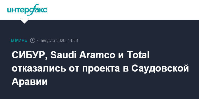 СИБУР, Saudi Aramco и Total отказались от проекта в Саудовской Аравии