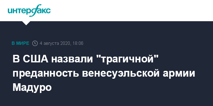 Москва. 4 августа. INTERFAX.RU - Бойцы армии Венесуэлы на данный момент все еще предпочитают поддерживать власти страны во главе с Николасом Мадуро, заявил во вторник спецпредставитель США по этой латиноамериканской стране Эллиот Абрамс.