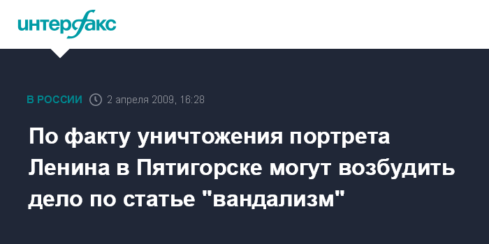 Ставрополь. 2 апреля. INTERFAX.RU - Управление внутренних дел по Пятигорску (Ставропольский край) проводит проверку по факту уничтожения памятника федерального значения в городе-курорте - наскального изображения Ленина, выполненного в 1925 году.