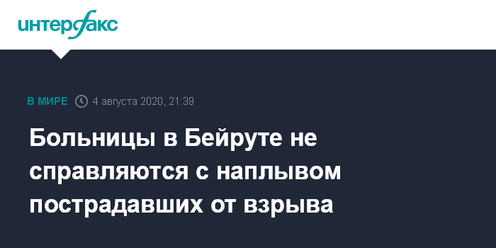 Москва. 4 августа. INTERFAX.RU - Больницы в ливанской столице не успевают оказать помощь всем людям, пострадавшим от мощного взрыва, передает Sky News.