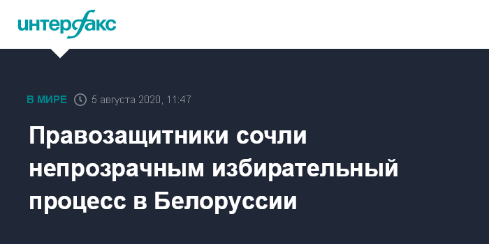 Москва. 5 августа. INTERFAX.RU - Белорусские правозащитники заявляют, что избирательный процесс в стране непрозрачный и недоступный для независимого наблюдения.