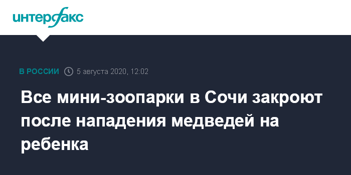 Москва. 5 августа. INTERFAX.RU - Мэр Сочи Алексей Копайгородский после гибели 11-летнего мальчика у вольера с медведями поручил в срочном порядке провести проверку всех открытых комплексов, баз отдыха, где могут содержаться животные.