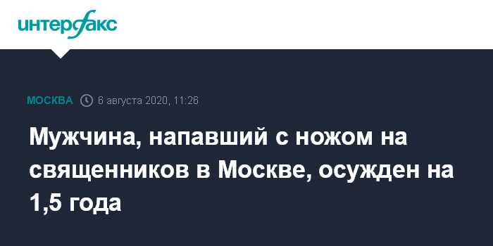 Мужчина, напавший с ножом на священников в Москве, осужден на 1,5 года
