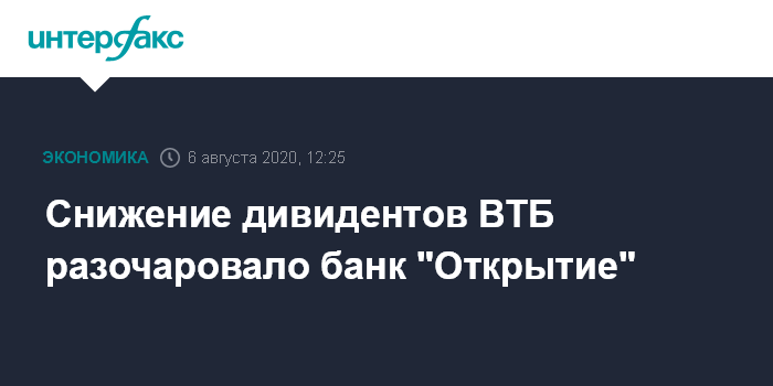 Снижение дивидентов ВТБ разочаровало банк "Открытие"
