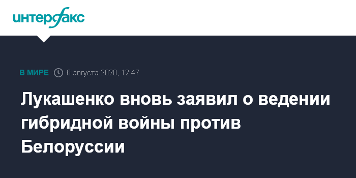 Москва. 6 августа. INTERFAX.RU - Президент Белоруссии Александр Лукашенко считает, что в настоящее время против республики идет гибридная война, допускает "пакости" с любой стороны.