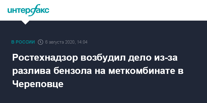 Ранее сообщалось, что авария на коксоаглодоменном производстве Череповецкого металлургического комбината произошла в ночь на 16 июня во время скачивания бензола для синтеза в железнодорожную цистерну. После наполнения емкости произошла утечка 2,6 тонны бензола, в результате которой бензол разлился по территории площадью порядка 30 кв. м. Чтобы убрать жидкость, использовали коксовую смесь, которая сыграла роль абсорбента. Погибших и пострадавших в результате инцидента не было.