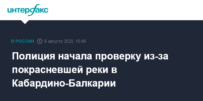 Москва. 6 августа. INTERFAX.RU - Поиски виновников загрязнения реки Баксан в Кабардино-Балкарии, окрасившейся в красный цвет из-за возможных выбросов, начали сотрудники республиканского МВД. Об этом сообщили "Интерфаксу" в министерстве.