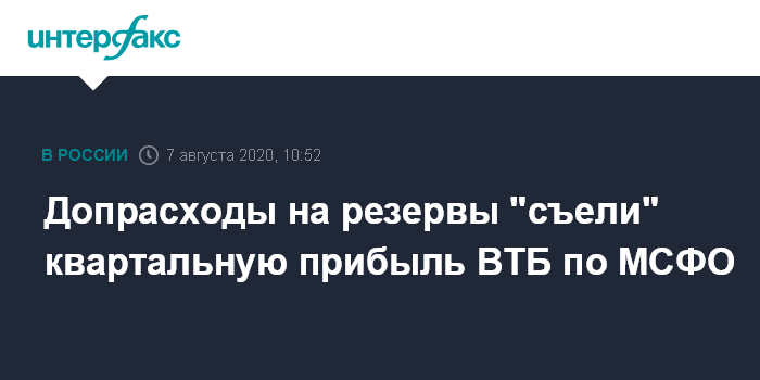 Допрасходы на резервы "съели" квартальную прибыль ВТБ по МСФО