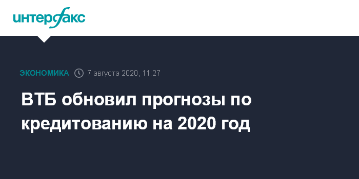 ВТБ обновил прогнозы по кредитованию на 2020 год