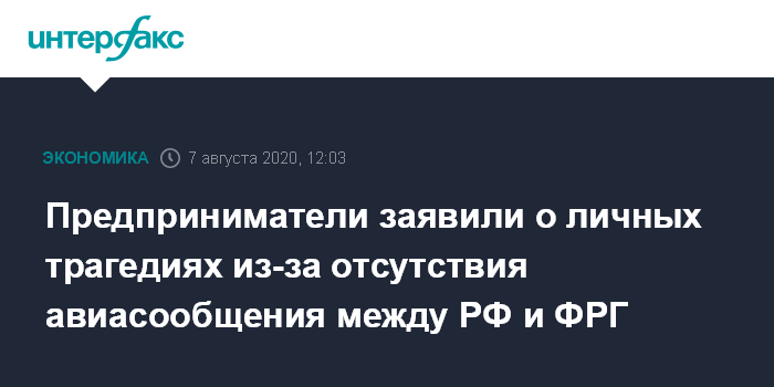 Предприниматели заявили о личных трагедиях из-за отсутствия авиасообщения между РФ и ФРГ