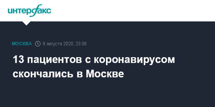 "В Москве скончались 13 пациентов, у всех был подтвержден диагноз пневмония и получен положительный результат тестов на коронавирусную инфекцию", - сказал представитель штаба.