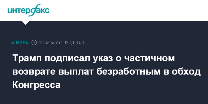 Трамп подписал указ о частичном возврате выплат безработным в обход Конгресса