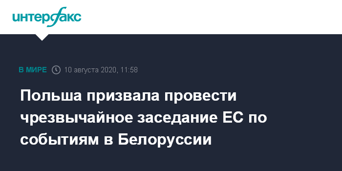 "Польша ответственна за своих ближайших соседей. Поэтому премьер Матеуш Моравецкий призвал главу Европейского совета Шарля Мишеля и председателя Европейской комиссии Урсулу фон дер Ляйен созвать чрезвычайное заседание Европейского совета в связи с событиями в Белоруссии", - говорится в заявлении, размещенном на сайте премьер-министра Польши.