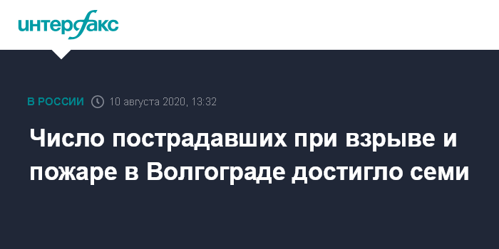 Число пострадавших при взрыве и пожаре в Волгограде достигло семи