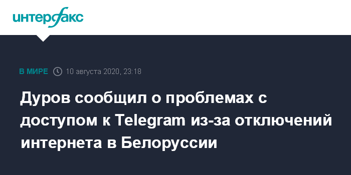 Москва. 10 августа. INTERFAX.RU - Основатель мессенджера Telegram Павел Дуров сообщил, что сервис прилагает усилия, чтобы оставаться доступным в Белоруссии, но периодически интернет в стране полностью выключается.