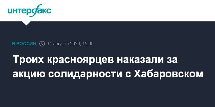 Москва. 11 августа. INTERFAX.RU - В Красноярске Центральный районный суд назначил административное наказание трем участникам шествия солидарности с хабаровчанами, которое прошло в минувшие выходные. Об этом сообщили в пресс-службе суда.