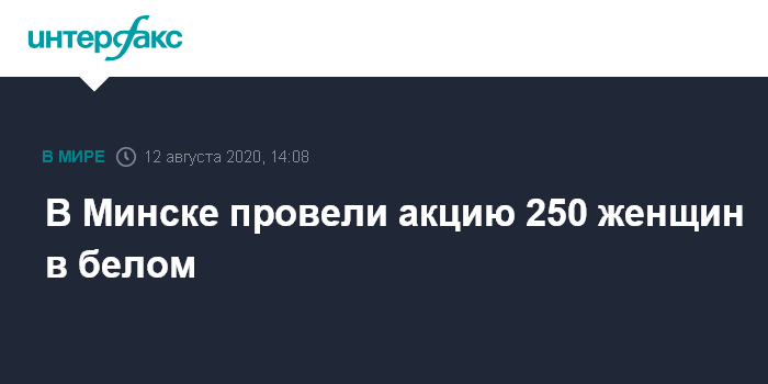 Москва. 12 августа. INTERFAX.RU - В Минске около 250 женщин в белой одежде вышли с цветами на акцию протеста против фальсификации результатов выборов и против применения силы к тем, кто выразил несогласие с объявленными итогами голосования.