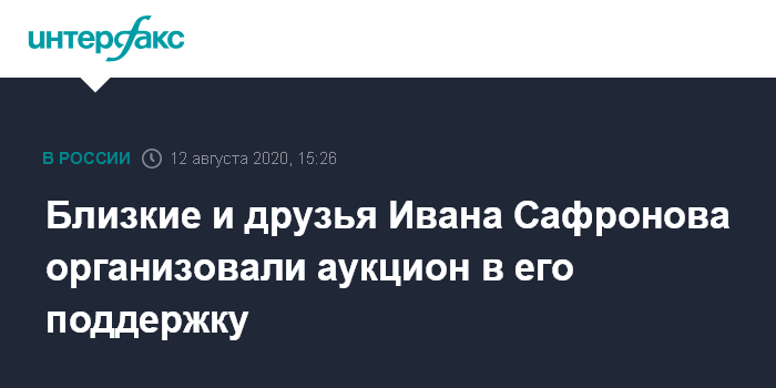 Москва. 12 августа. INTERFAX.RU - Близкие и защита журналиста, советника главы "Роскосмоса" Ивана Сафронова, обвиняемого в государственной измене, 18 августа проведут аукцион в его поддержку, сообщили "Интерфаксу" в правозащитном объединении "Команда 29", адвокаты которого защищают Сафронова.