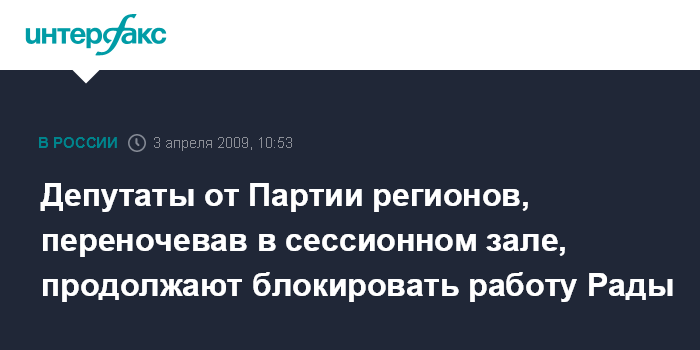 Москва. 3 апреля. INTERFAX.RU - Фракция Партии регионов в пятницу продолжает блокировать трибуну и президиум парламента, передает корреспондент агентства "Интерфакс-Украина".