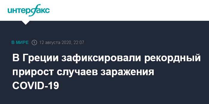 Москва. 12 августа. INTERFAX.RU - В Греции медики выявили самое большое с начала пандемии число случаев заражения коронавирусом за сутки, сообщают в среду европейские СМИ.