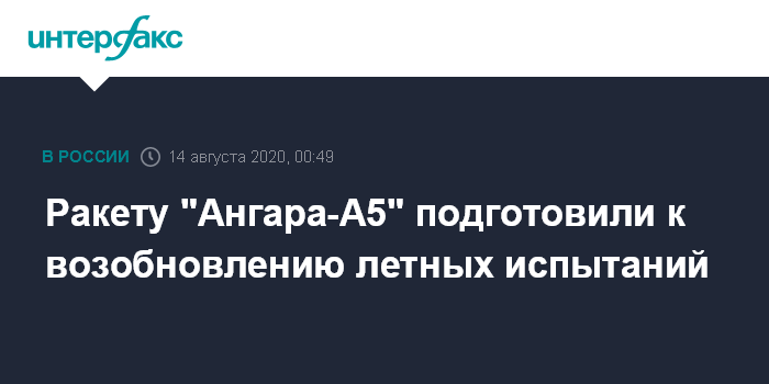 Москва. 13 августа. INTERFAX.RU - Второй летный образец тяжелой ракеты-носителя "Ангара-А5" подготовлен к отправке на космодром Плесецк, сообщил "Роскосмос".