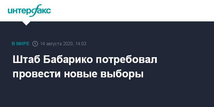 Москва. 14 августа. INTERFAX.RU - Штаб арестованного бывшего предправления "Белгазпромбанка" Виктора Бабарико потребовал провести до 15 сентября новые президентские выборы. Бабарико не был допущен к выборам, по итогам которых Центризбирком Белоруссии 9 августа объявил о победе Александра Лукашенко.