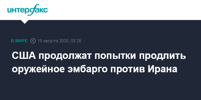 Ранее госсекретарь США Майк Помпео раскритиковал Совбез ООН за итоги голосования по американскому проекту резолюции о продлении эмбарго на продажу оружия Ирану и заявил, что Соединенные Штаты "будут работать и дальше, чтобы теократический режим не имел свободы покупать и продавать вооружения, которые угрожают сердцу Европы, Ближнему Востоку и миру в целом".