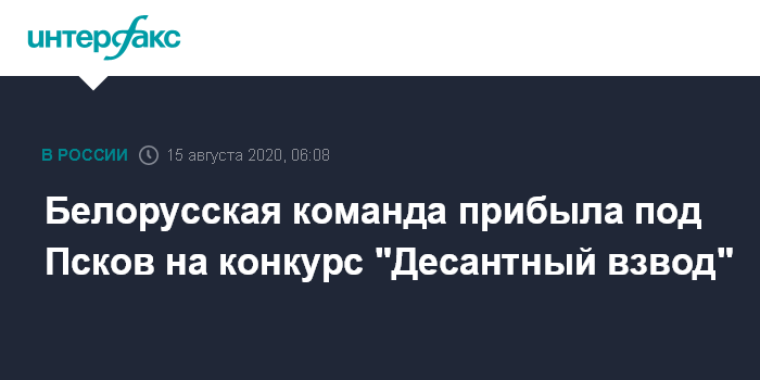 Москва. 15 августа. INTERFAX.RU - В Псковское гвардейское соединение Воздушно-десантных войск для участия в конкурсе "Десантный взвод", проводимого в рамках "Армейских международных игр-2020", прибыла команда-участница из Белоруссии, сообщил в субботу департамент информации и массовых коммуникаций Минобороны РФ.