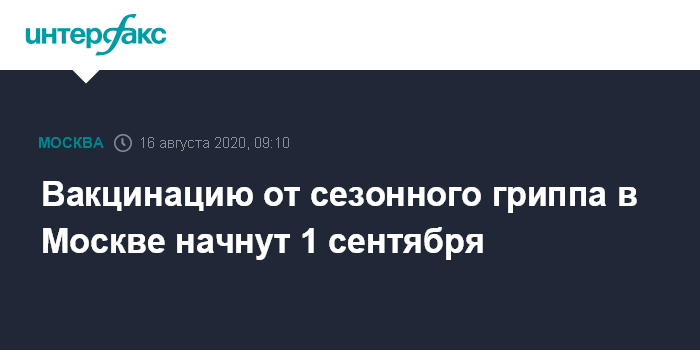 Москва. 16 августа. INTERFAX.RU - Вакцинация от сезонного гриппа в этом году в Москве начнется раньше.