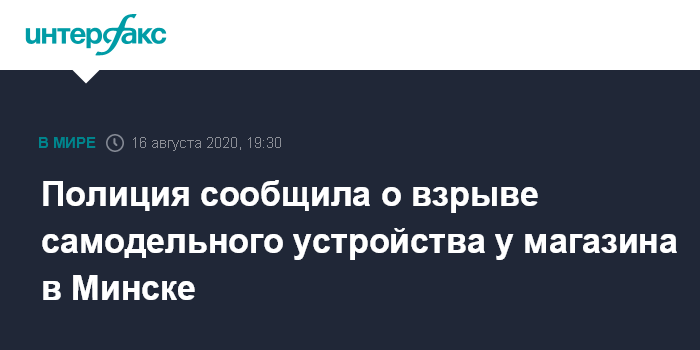 Москва. 16 августа. INTERFAX.RU - Министерство внутренних дел Белоруссии сообщило, что в субботу были задержаны двое мужчин и женщина, которые, как утверждается, взорвали самодельное взрывное устройство около универмага "Беларусь".