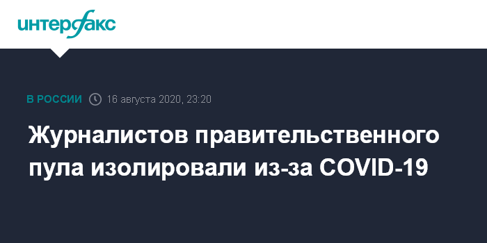 Москва. 16 августа. INTERFAX.RU - Журналисты "правительственного пула", у которых тест на коронавирус был положительный, находятся в изоляции и под наблюдением врачей, сообщил пресс-секретарь премьер-министра РФ Борис Беляков.