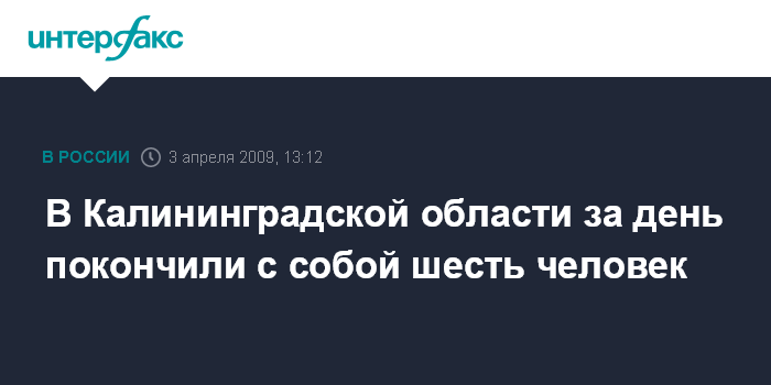 Москва. 3 апреля. INTERFAX.RU - В Калининградской области накануне зафиксировано шесть случаев суицида, сообщили "Интерфаксу" в региональном следственном управлении.